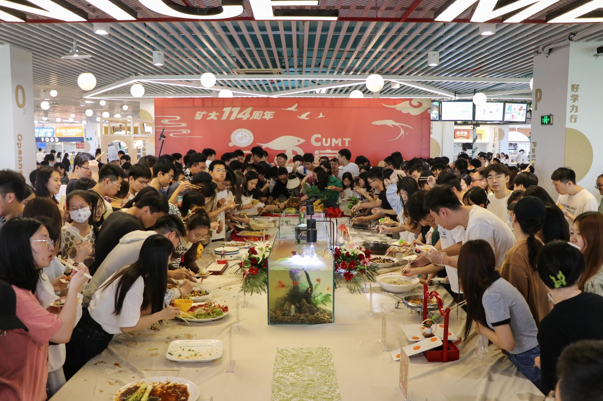 此外,学校还开展了5项富有心意的校庆主题美食活动,分别是:“校庆特餐”活动,邀请了当地名厨名师参与制作,结合学校办学地搬迁历史制作了地方名菜作为套餐主菜,师生使用校园卡刷6.1元可购买原材料成本价值10元的校庆专属套餐;“往昔岁月,难忘舌尖”活动,通过定制美食礼盒为校友寄去那份寄托思念的舌尖记忆;“文创雪糕,约你打卡”活动,推出了中国矿业大学南门、焦作路矿学堂和校徽3种元素文创雪糕;“大‘咖’登场,香漫校园”活动,联合品牌商家每天提供114杯特价咖啡;“桃李芬芳,福惠至臻”活动,教职工校园卡刷1分钱可兑换5元用餐现金券。