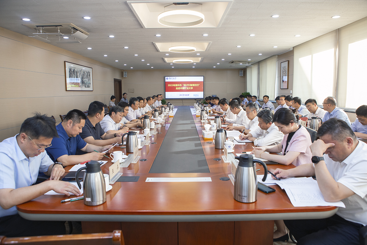 6月8日下午,宿州市委书记杨军一行来校开展“招才引智高校行”活动并签署市校战略合作协议。学校在行健楼B301会议室举行座谈会,宿州市委常委、市委宣传部部长、市委秘书长李红,宿州市委常委、副市长祖钧公,宿州市委常委、市委组织部部长、市委统战部部长刘天卓,校长宋学锋,副校长李强、卞正富,校党委常委、校长助理张万红出席会议。卞正富主持座谈会。
