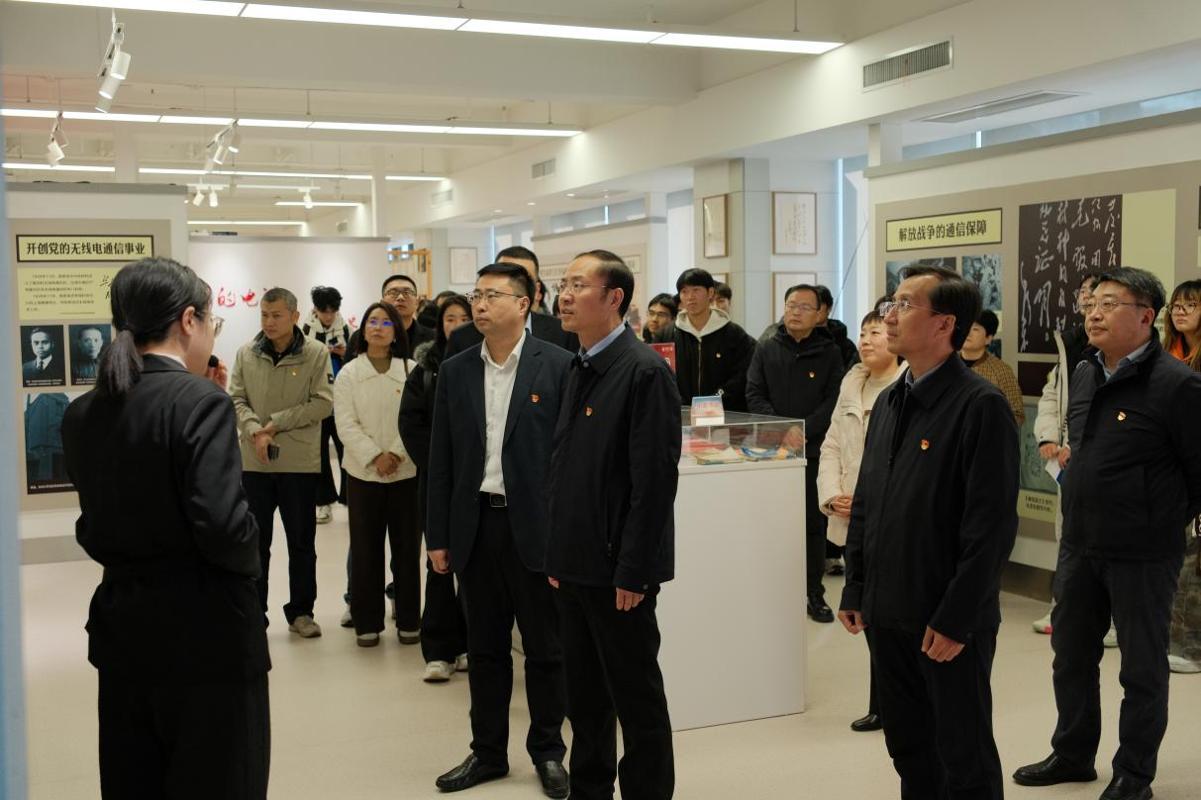 在讲解员引导下,师生们走进“激荡的电波——红色通信发展史”实境课堂,参观馆内陈列的军用电台等实物和战时通信、密码破译等史料,直观感受国家通信事业从艰难起步到跨越发展的奋斗历程。