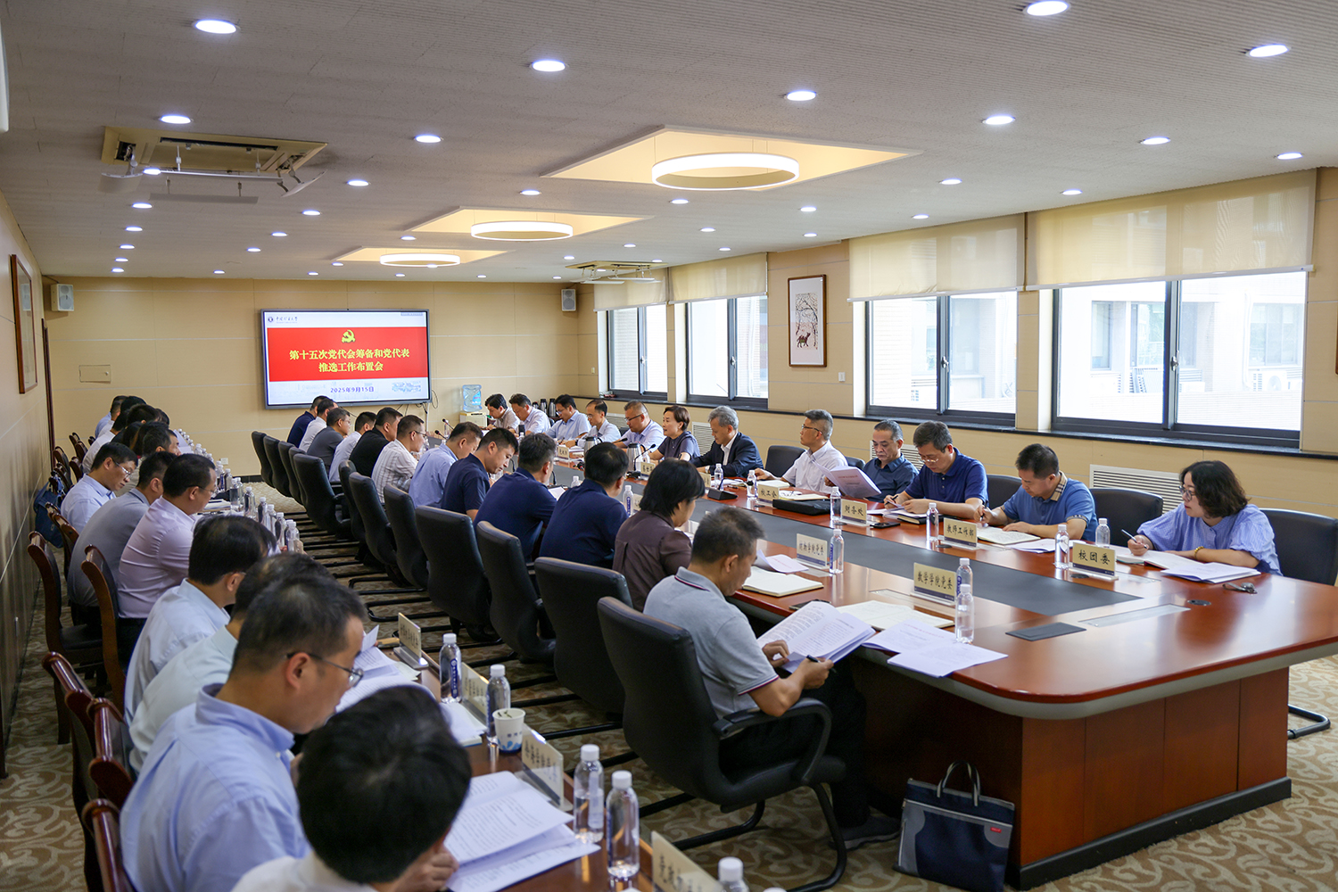 刘波介绍了学校召开第十五次党代会的总体考虑及背景,宣读了江苏省委教育工委同意我校召开第十五次党代会的批复,对第十五次党代会的指导思想和主要任务、主要议程、代表名额和构成比例、党委纪委组成人员名额、选举办法等作了详细说明。她指出,第十五次党代会的筹备、谋划和胜利召开,将描绘未来五年学校以高质量党建引领高质量发展的美好蓝图,正好也与学校全面贯彻落实全国教育大会精神、“十五五”谋篇布局在时间上衔接一致,在目标任务上高度契合,在这样一个重要时点,召开第十五次党代会、进行换届选举,对于凝聚全校共产党员和师生员工共识,答好“教育强国,矿大何为”的时代答卷,加快建成能源资源特色世界一流大学具有重大战略和实践意义。