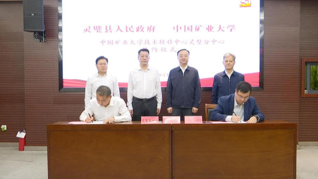 座谈会上,校地双方举行了中国矿业大学技术转移中心灵璧分中心和“行健”励志奖学金签约仪式。