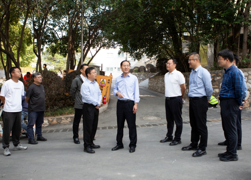 李江涛一行先后来到文昌校区南门、学4学5楼外环境提升改造工地、学生生活区大下坡路段、出版社、南湖校区“海淀亭”周边水域、学苑南路人行道改造工地、松苑餐厅、松苑1号楼学生公寓、低碳能源与动力工程学院实验室和危化品库房、计算机科学与技术学院/人工智能学院机房等重点场域和关键部位开展安全检查。
