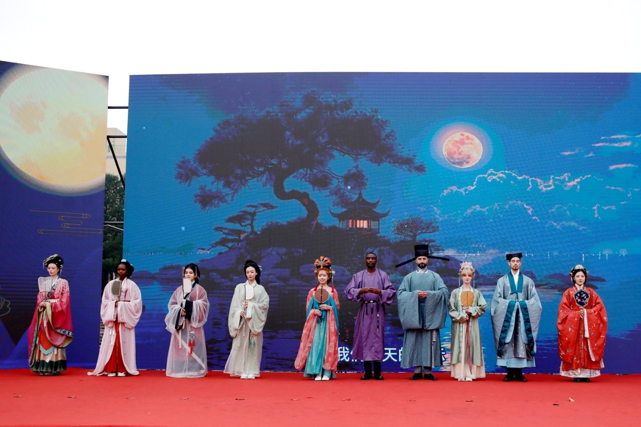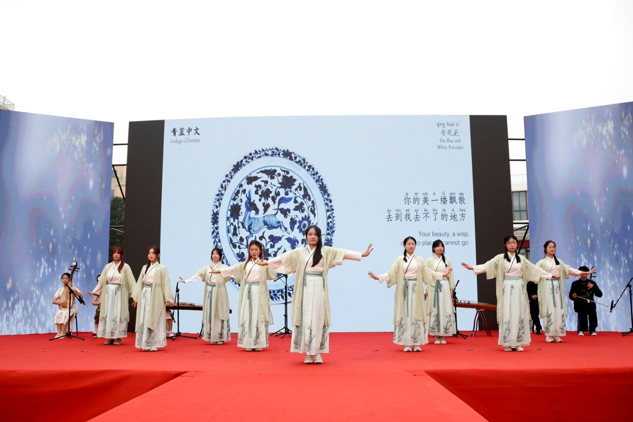 舞台上,百余名中外学子携手呈现了一场文化交融的盛宴。中国传统舞龙舞狮与来自32个国家的留学生合唱的经典歌曲《We Are The World》拉开序幕。江苏师范大学、徐州医科大学、徐州工程学院带来的《我爱你中国》《My Heart Will Go on》,我校学生展示的《月亮代表我的心》《喀秋莎》《留学生汉服表演》等节目,展现了多元文化交流融合的独特魅力。哈萨克斯坦民族舞蹈、摩洛哥舞蹈、俄罗斯民族舞蹈、泰国东北舞蹈、巴基斯坦歌舞等一系列节目,将观众们引入一个个绚丽多彩的文化国度。传统的中国节目《青花瓷》《天若有情》等节目更是引发了观众们的共鸣,阵阵掌声经久不息。