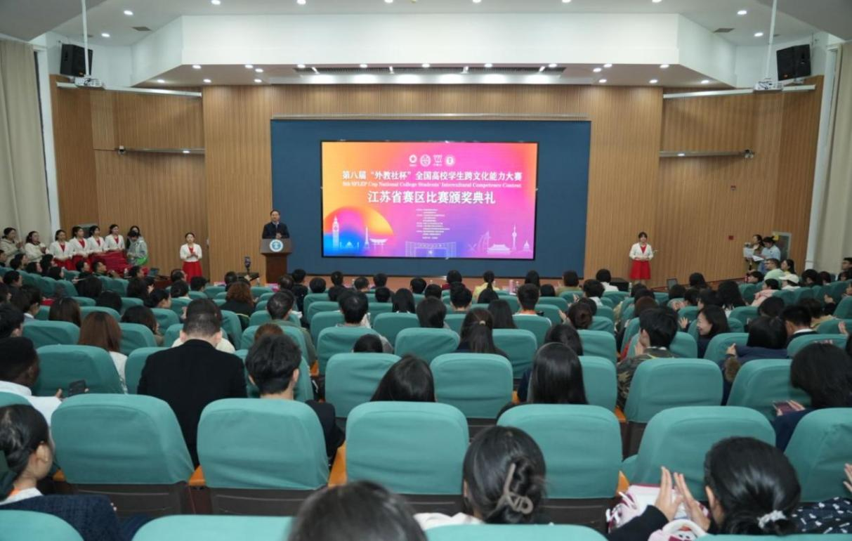 大赛颁奖典礼于10月26日上午举行。我校党委副书记李江涛、江苏省高等教育学会会长丁晓昌、江苏省高等学校外国语教学研究会会长李霄翔在颁奖典礼上致辞,各组评委代表分别做大赛点评,上海外语教育出版社江苏中心主任黄新炎宣读获奖名单。典礼由外国语言文化学院院长祖大庆主持。