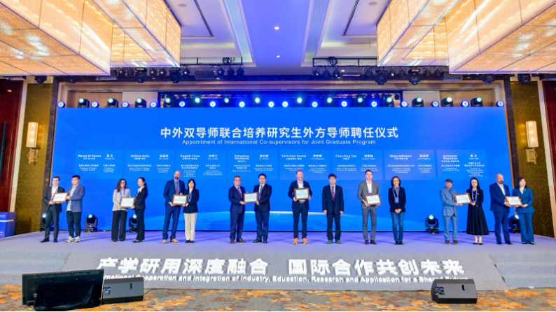 在合作交流周活动开幕式中外双导师联合培养研究生外方导师聘任仪式上,校国际合作交流处负责人代表学校向意大利比萨大学安东尼奥·穆索里诺教授颁发了外方导师聘书。在“双高协同”参建单位与海外高校机构合作文本交换仪式上,校国际合作交流处负责人代表学校与斯洛伐克日利纳大学、徐州国家高新技术产业开发区、江苏淮海新能源车辆有限公司的参会代表交换了“新能源发电与电动车国际合作联合实验室建设”四方合作协议。开幕式上举办了“江苏—非洲高校合作联盟”成立仪式,我校正式成为联盟中方成员高校。