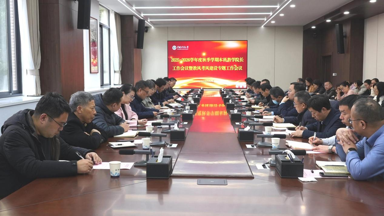 12月4日下午,学校在行健楼B101室召开2025-2026学年度秋季学期本科教学院长工作会暨教风考风建设专题工作会议。副校长王忠宾出席会议并讲话。会议由教务部部长石礼伟主持。