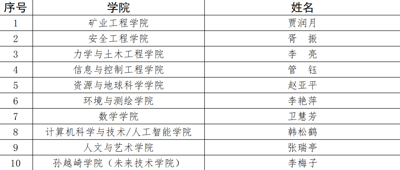 中国矿业大学2024-2025学年度十佳辅导员获得者名单