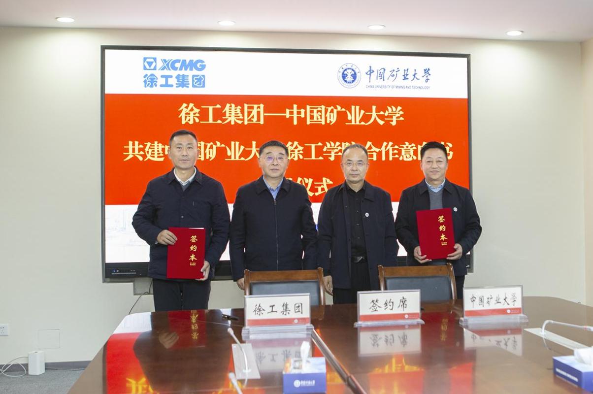 王忠宾代表学校、徐工机械副总裁单增海代表企业签署共建中国矿业大学徐工学院合作意向书。中国矿业大学对外合作与发展处负责人汇报了徐工学院建设前期推进情况。
