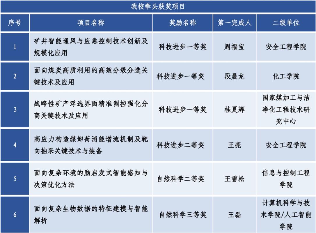 段晨龙教授作为第一完成人的“面向煤炭高质利用的高效分级分选关键技术及应用”项目,面向清洁燃烧、低碳冶金和煤化工等高质量用煤需求, 产学研用联合自主创新,发明了强振动高弹性分级技术和宽粒级煤炭精准分选技术与装备,研发了分级分选多源感知与智能控制技术,开发了面向多端产业需求的煤炭高效分级分选工艺系统,破解了煤质适应性和产品质量稳定性差的难题,实现了宽粒级煤炭高精度智能高效分选,推动了煤炭高质量利用。目前,研究成果已在国内14个大型煤炭基地应用,并出口至澳大利亚、俄罗斯及蒙古等“一带一路”沿线国家,经济、社会与环境效益显著,为我国绿色矿山建设、节能减排、化石能源清洁高效利用及国家“双碳”目标实现做出了重要贡献。
