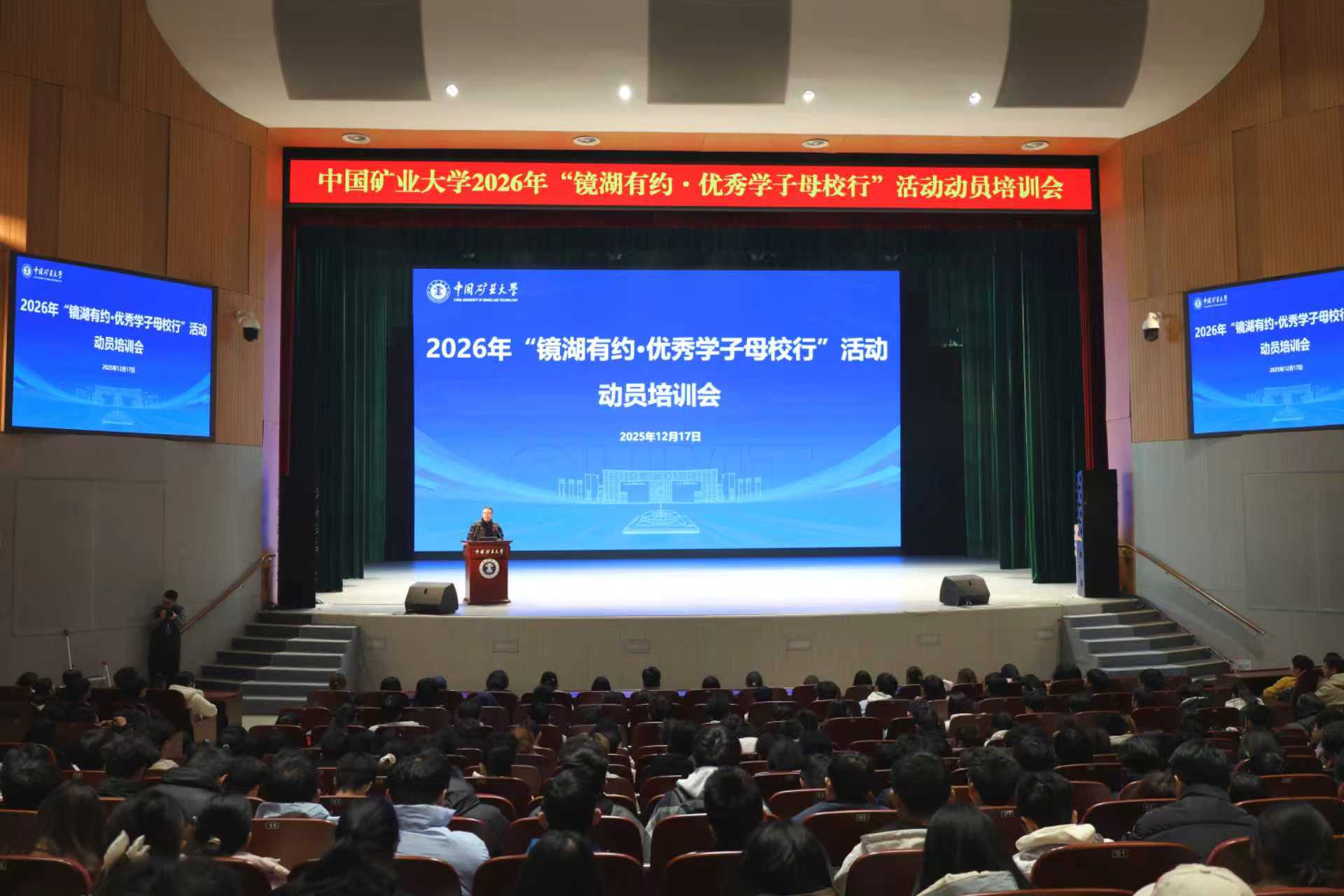 为发挥矿大学子招生宣传纽带作用,持续深化大中衔接一体化育人成效,12月17日下午,我校2026年“镜湖有约·优秀学子母校行”活动动员培训会在明德礼堂召开。党委学生工作部副部长畅军亮、各学院本科招生工作联络员、2025级新生辅导员与母校行活动各团队队长近1000人参加会议。会议由本科生招生办公室副主任何海明主持。