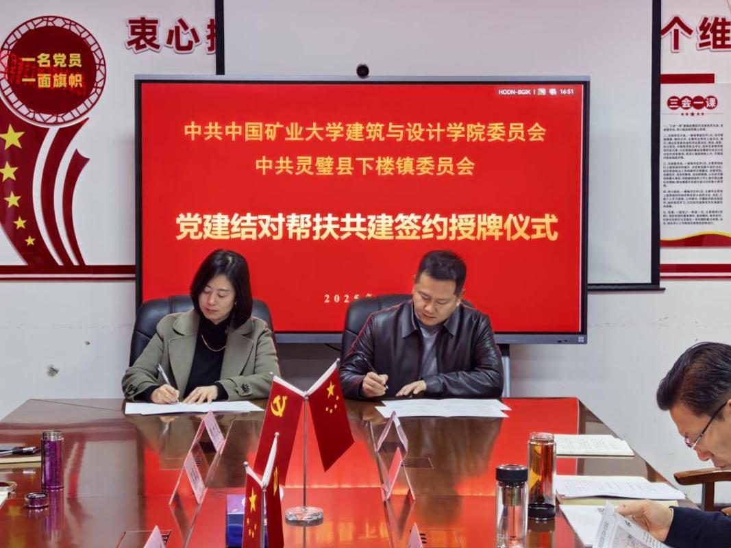 校地双方举行了党建结对共建交流座谈会。在座谈会上,进行了我校建筑与设计学院党委和灵璧县下楼镇党委党建结对共建帮扶签约授牌和助学物资捐赠仪式。建筑与设计学院党委书记罗萍嘉和下楼镇党委书记刘金虎分享了学院和下楼镇的基本情况。灵璧县委常委、副县长许东方,我校挂职帮扶灵璧干部、灵璧县副县长孙留涛重点介绍了下楼镇的目标定位、建设思路及具体举措。校地双方就进一步深化党建共建基地内涵、拓展学科应用场景、推动更多师生把论文写在大地上等进行了深入研讨交流。