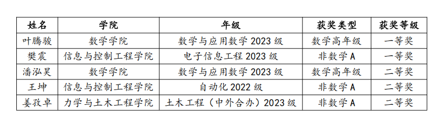 第十七届全国大学生数学竞赛决赛我校学子获奖名单