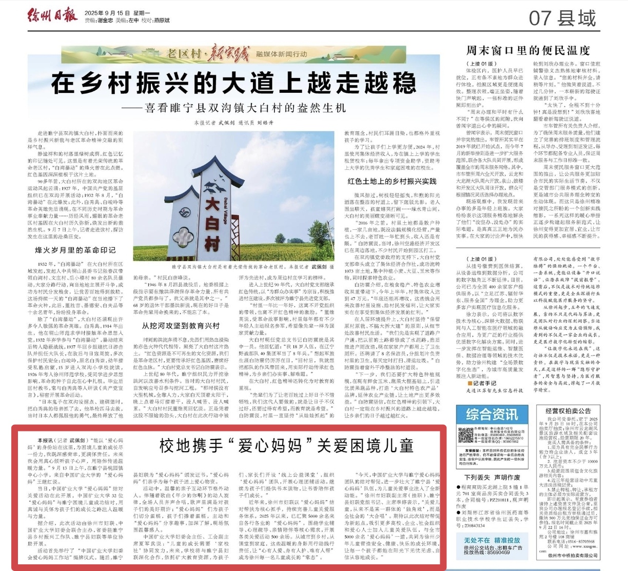 本报讯(记者 武佩剑)“能以‘爱心妈妈’的身份站在这里,为困境儿童的成长尽一份力,我既深感荣幸,更满怀责任。未来我会用真心倾听孩子心声,用陪伴传递温暖力量。”9月13日上午,在睢宁县桃园镇中心小学,来自中国矿业大学的“爱心妈妈”王继红说。