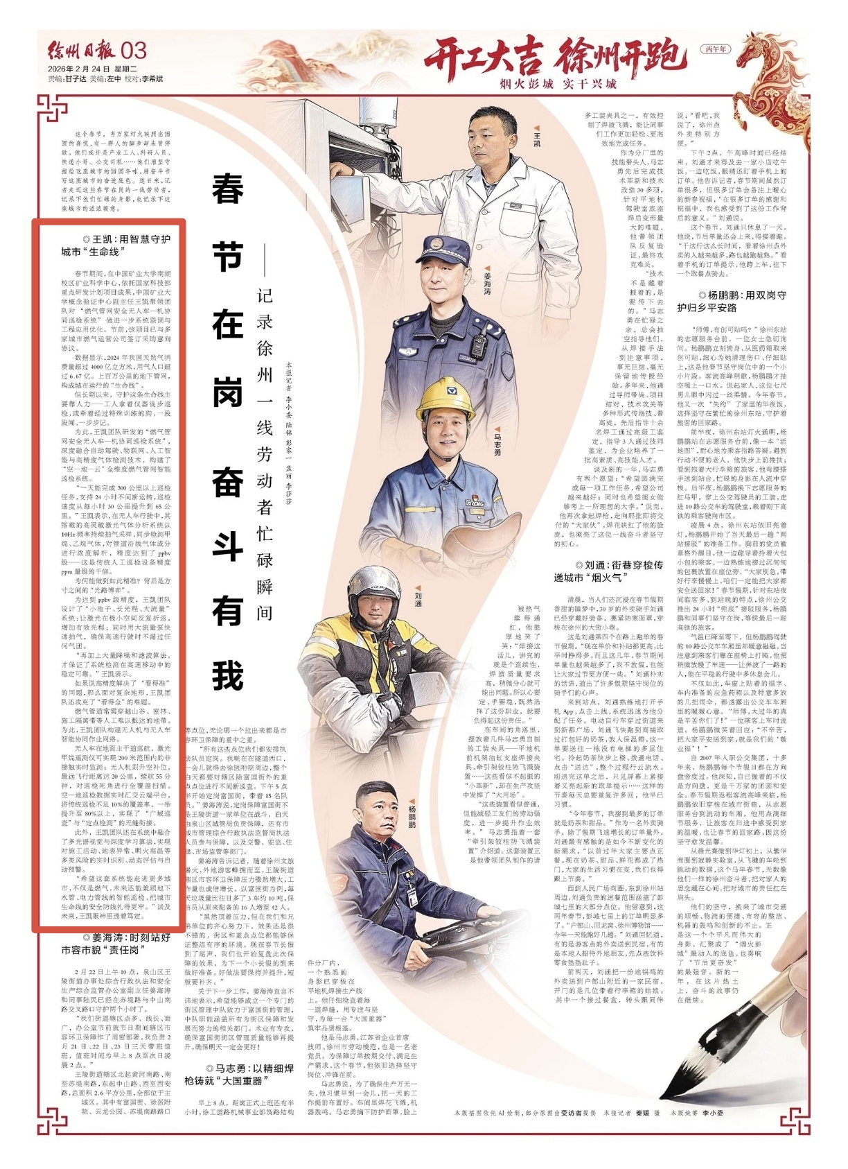 从晨光熹微到华灯初上,从繁华商圈到寂静实验室,从飞驰的车轮到跳动的数据,这个马年春节,无数像他们一样的徐州奋斗者,把对家人的思念藏在心间,把对城市的责任扛在肩头。