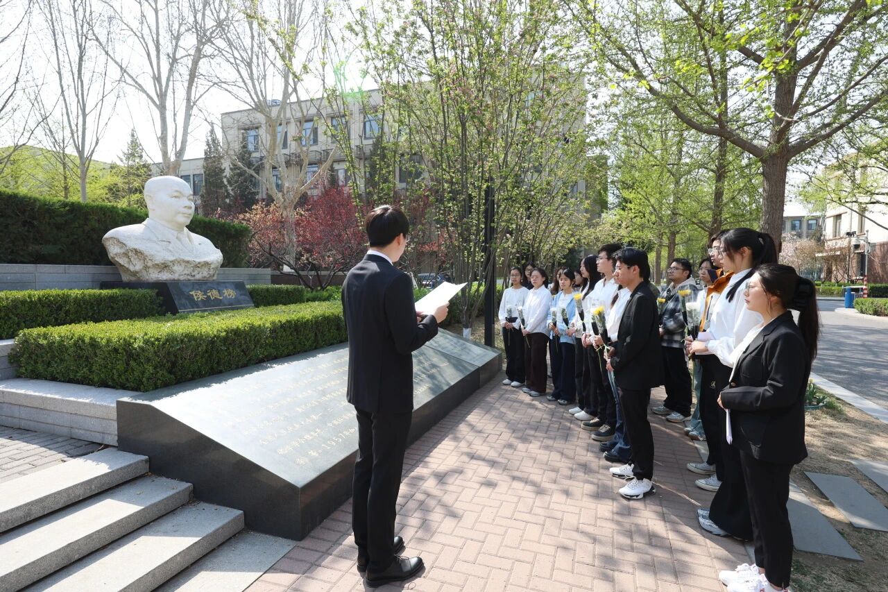近日,北京化工大学精心组织了研究生校园红色足迹宣讲活动。学校研究生师生代表来到朝阳校区启荣园侯德榜先生雕像前,深情讲述了侯先生留学归国、攻坚克难,打破西方制碱技术垄断,发明“联合制碱法”的感人事迹,重温了他秉持科学救国理想、矢志不渝的奋斗历程。同学们满怀敬仰之情,依次向先生雕像鞠躬致敬、敬献鲜花。