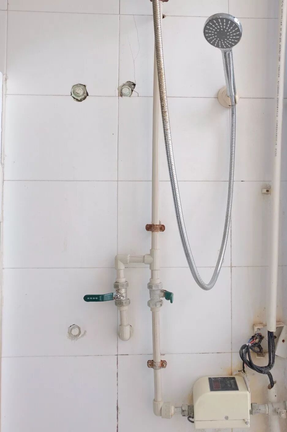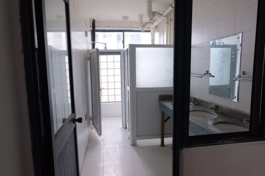 盥洗室有3个洗漱池,2个厕坑。洗浴间配有花洒和刷卡水控机,用洗浴卡刷卡便可放出热水洗浴。