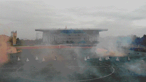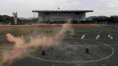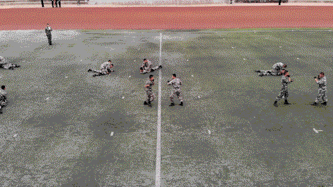 彩色的烟雾弹弥漫开来,东坡运动场成为迷彩的海洋,仿佛置身于真实的战场。占领散兵坑、开辟雷区通道、利用炸药包爆破三角锥、火力压制……最终占领敌方阵地,承训官兵为我们模拟了真实的战场,呈出了一场精彩绝伦的视觉盛宴。