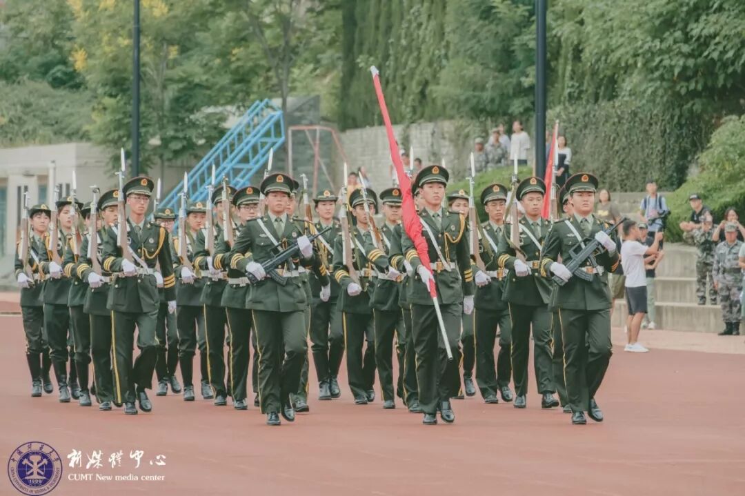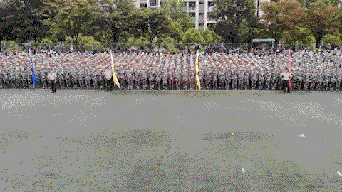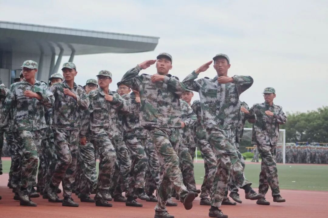 迈着整齐划一的步伐,喊着嘹亮飒爽的口号,新生分布列以学院为单位,自信地展示着军事训练的成果。意气风发,是年轻学子最闪亮的标志!