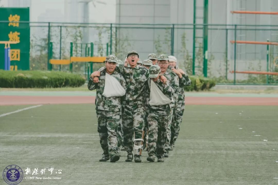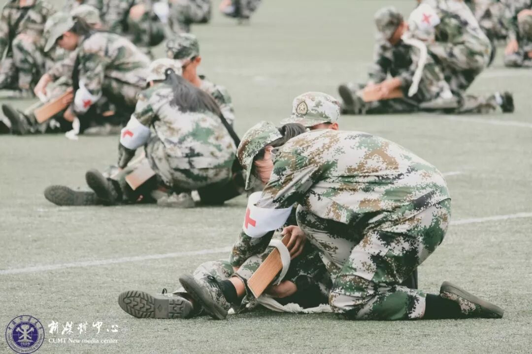 战场救护是新生训练的必学技能,是提高战场生存能力的有效途径。同学们演示了三种包扎急救方式,手法熟练,态度冷静,生动地还原了战场上医疗伤员的情境,成果斐然。