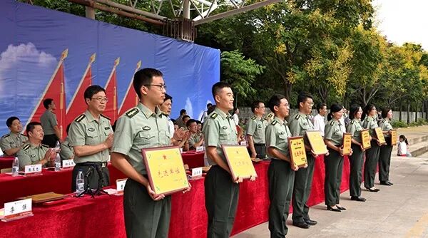 学生军训旅长、副校长曹德欣宣读获奖名单,校领导为先进单位及个人颁发奖牌。