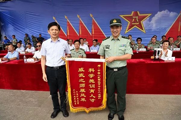 中国矿业大学宋学锋校长向承训部队送上锦旗,并表示感谢与慰问。