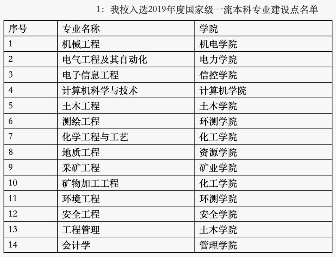 12月30日,教育部公布了2019年度国家级和省级一流本科专业建设点名单,中国矿业大学17个专业入选一流本科专业建设“双万计划”,其中,14个专业入选国家级一流本科专业建设点,3个专业入选省级一流本科专业建设点。学校国家级一流专业的申报通过率达到82.35%,超过了中央赛道77%的平均值。