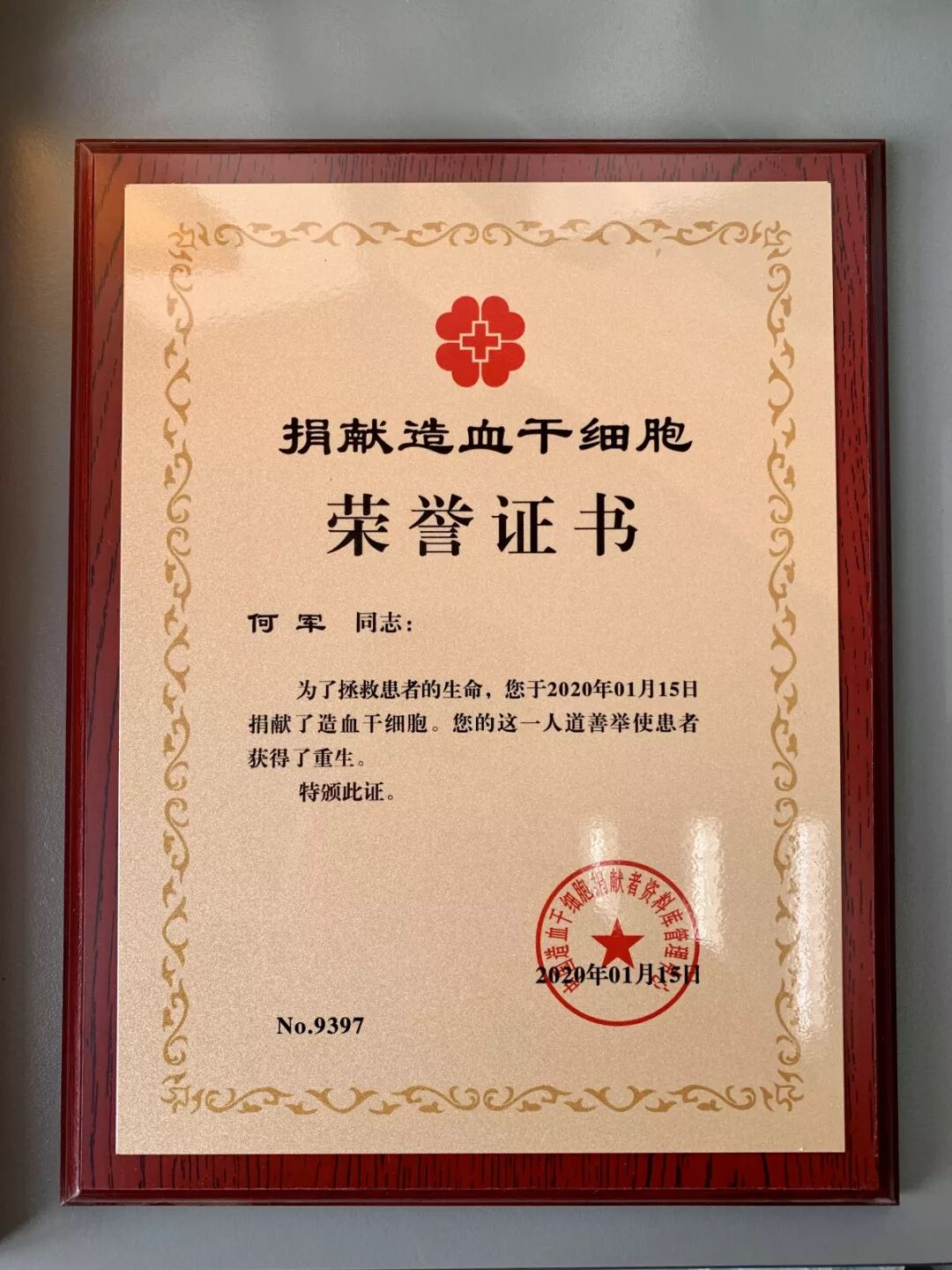 月,何军接到了来自徐州市红十字会的电话,被告知与一名白血病患者初配成功,并询问是否愿意捐献。何军没有丝毫犹豫地答应了。而后经过健康体检、高分辨配型等程序,非常幸运地与省内一名男童配型成功。