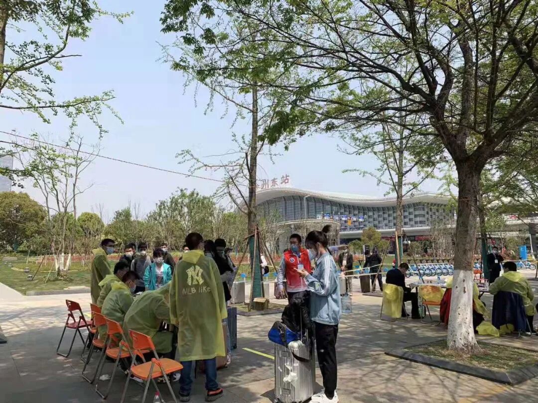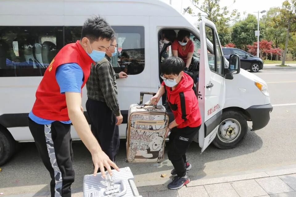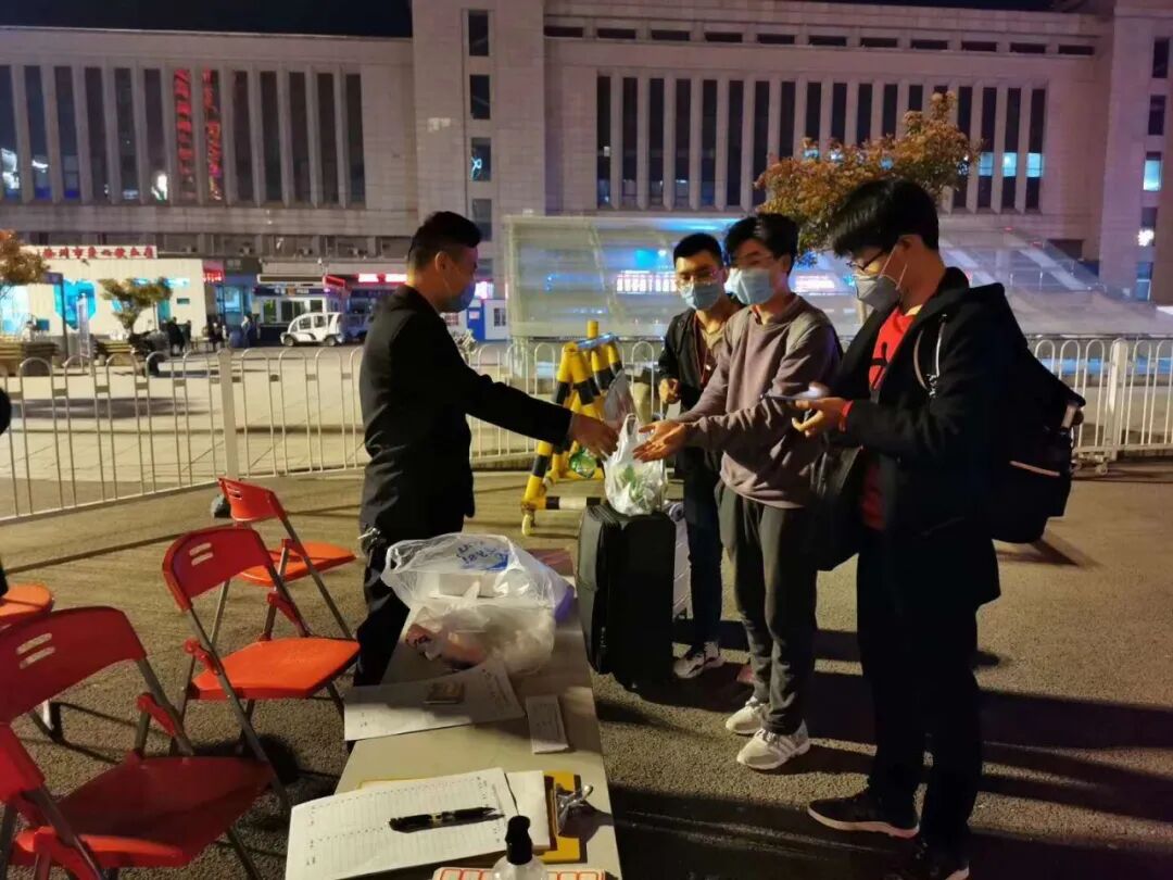 数学学院17级的刘同学从火车站乘坐接站班车刚刚到达学校。“从学校、学院网络上知道学校的接站班车信息,就直接过去了,这下直接就到学校了”,“上车前我们都进行了测温、消毒,还发了座位号”,“看到青春广场这儿还设置了就餐疏导点,还有户外的就餐地点,挺好的”,“大三了,也是为考研做准备的时间,期待学业上能越来越好”。