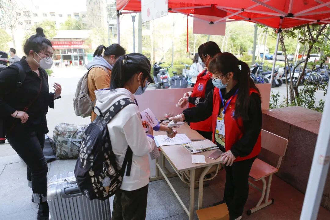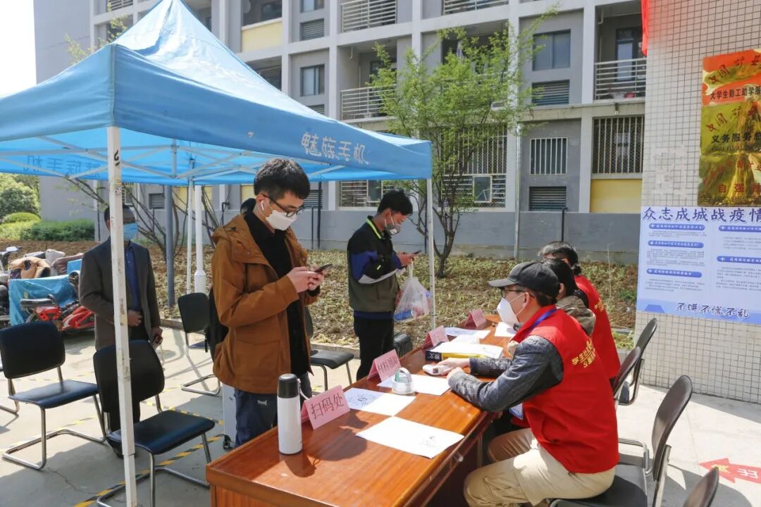 信控学院的赵同学和其他几名志愿者正在宿舍楼前对返校同学进行信息核对。“接到通知我就很快返校了,作为一名党员,需要我们的时候,我们一定要在”,“回来后老师对我们进行了一些工作培训,我们也帮助做些文件整理、分发防护物资的工作,感觉挺充实的”。
