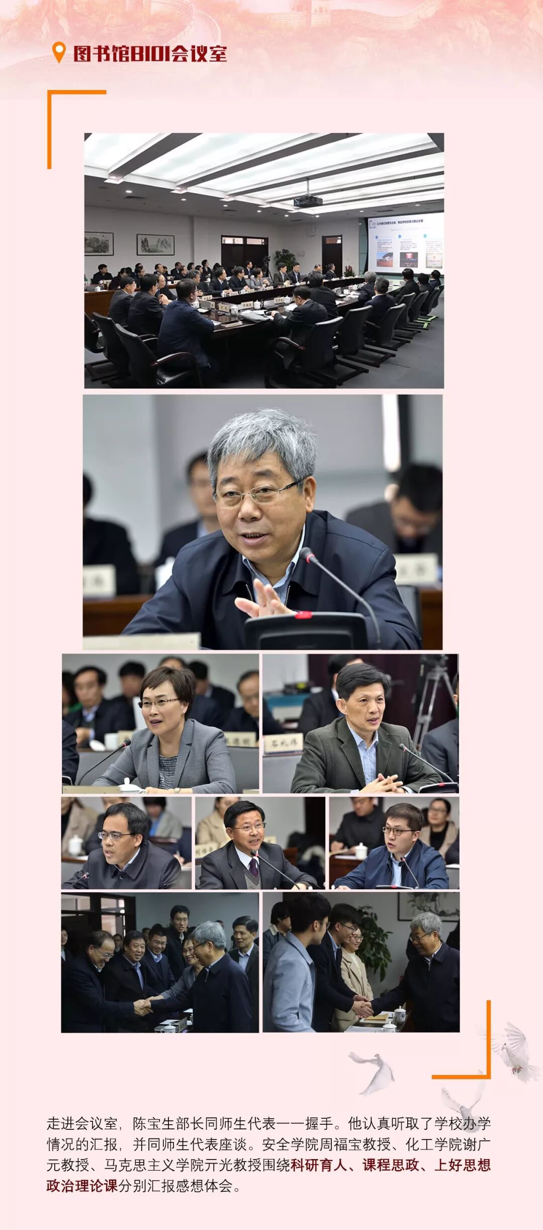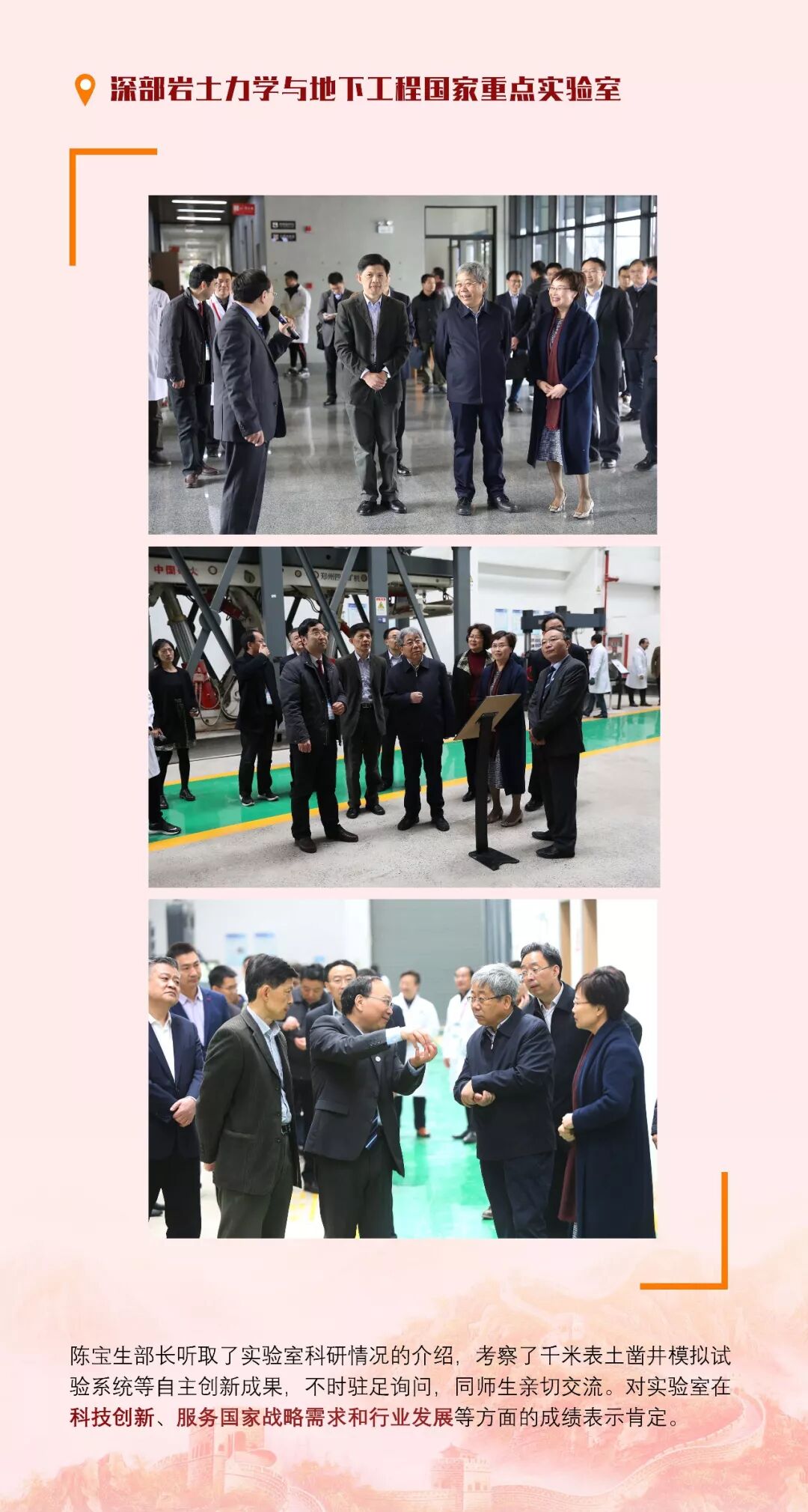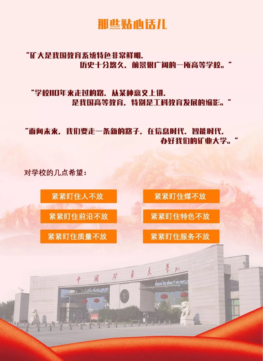 校史馆、深部岩土力学与地下工程国家重点实验室、图书馆B101会议室……在短短的不到2个小时的时间里,陈宝生部长边走边听,听讲解,听汇报,听感想,与师生代表座谈,对矿大人提出了殷切期望和谆谆嘱托,暖人心田,催人奋进。