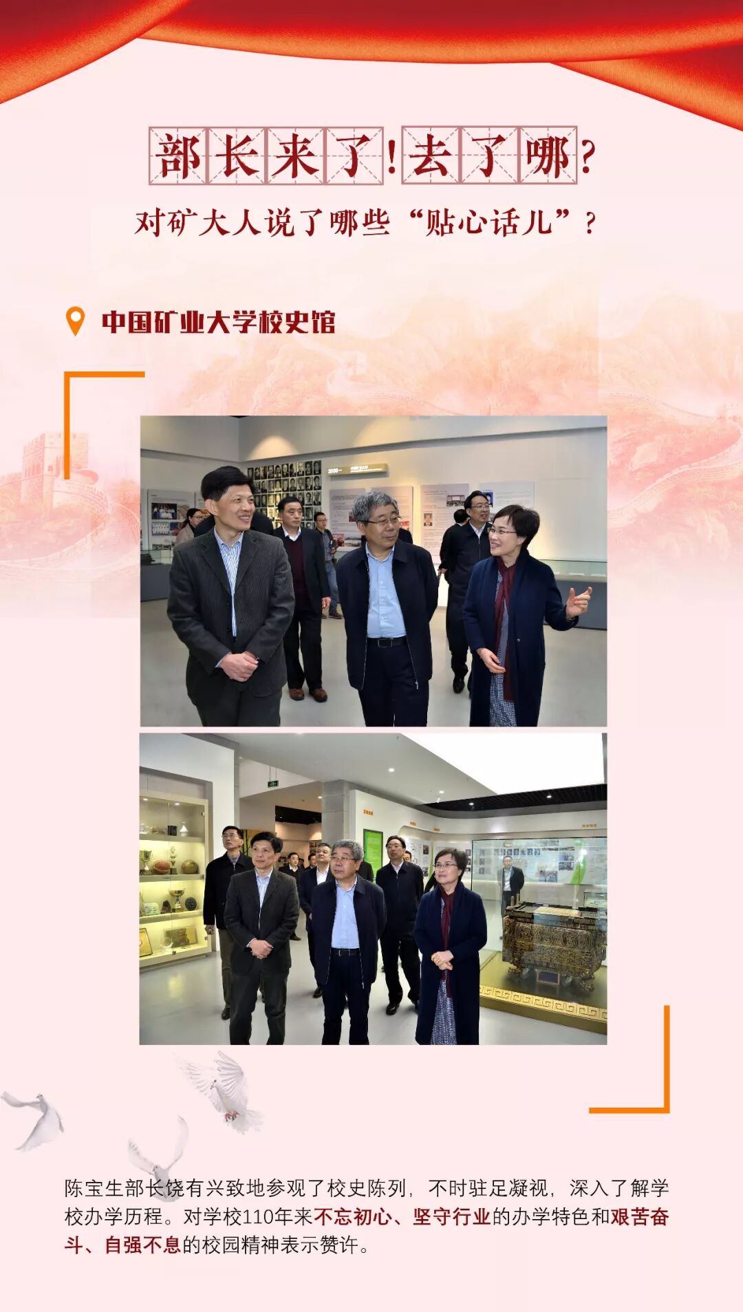3月21日上午,在中国矿业大学喜迎建校110周年之际,教育部党组书记、部长陈宝生一行来到这里。