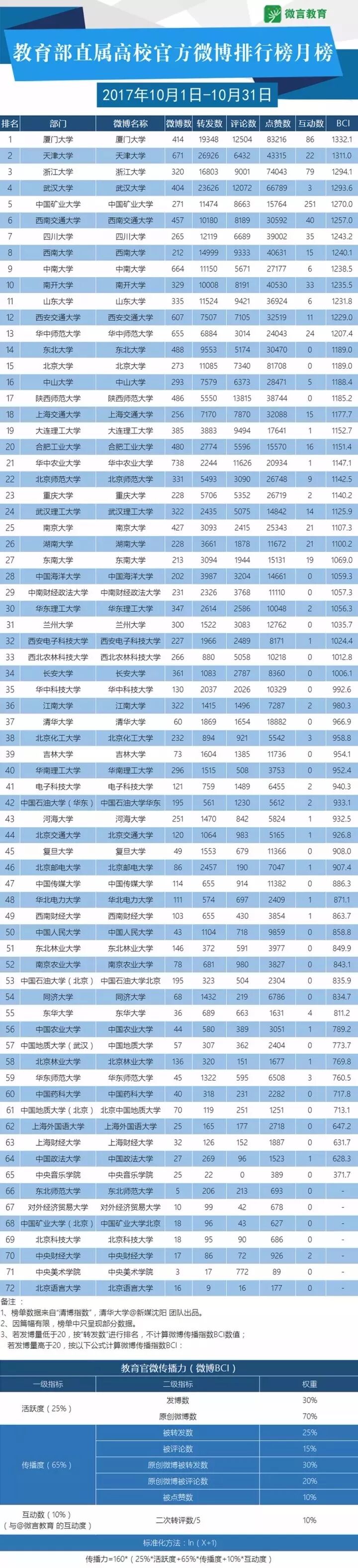 2017年10日,中国矿业大学官方微博在教育部直属官方微博排行榜上排名第五。