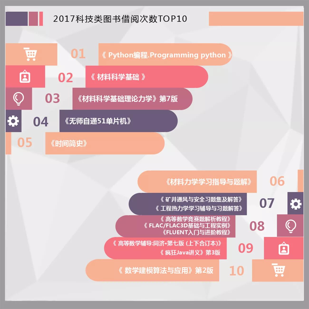 科技类方面,借阅第一名的为《Python编程.Programming python》,在信息化的今天,看来没点语言编程的功夫还真说不过去,看来我校的同学也都成为了新时代需要的人才。