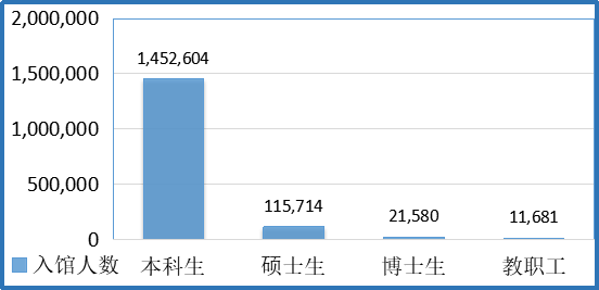 从图表上看,2016年是近四年来入馆人次最多的一年,2017年比2016少了不少哦~为什么呢?是不是因为公教区大变身,同学们都不爱馆馆了呢?!还是因为2017级的萌新不爱看书呢?不是小编吓唬你们,小心成为“近五年最差”哦!(开个玩笑